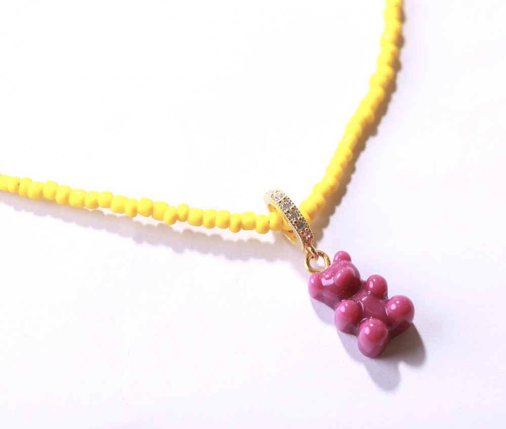 سلسال خرز تيدي بير : عنابي باصفر